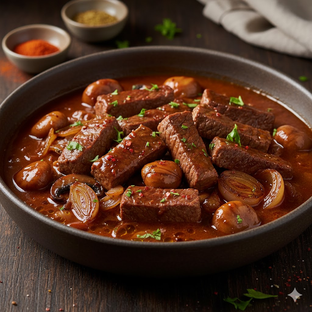 לשפוך את הרוטב על הבשר עד שיכסה כ-3/4 מגובה הבשר.